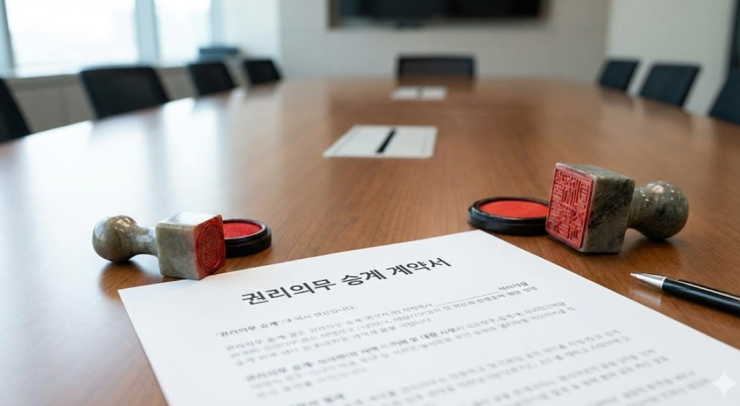 - 권리의무 승계 계약서: 매도인, 기존 매수인(개인), 신규 매수인(법인) 3자가 모여 "기존 계약의 모든 권리와 의무를 신규 법인이 승계한다"는 내용의 합의서를 작성해야 합니다.